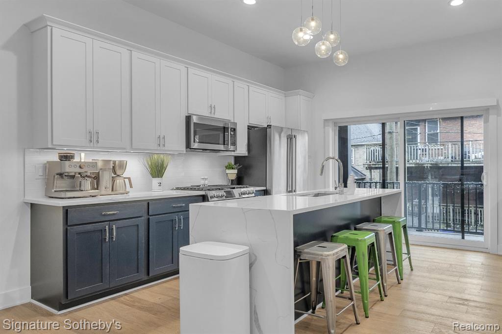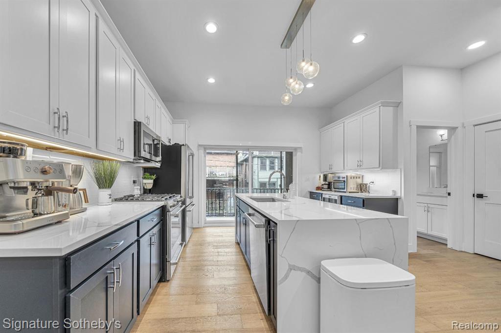 BACK ON THE MARKET DUE TO BUYER UNABLE TO COMPLETE FINANCING....Sophisticated townhouse condominium in the heart of historic Corktown. Premium builder upgrades throughout by esteemed Ferlito Construction in this like-new residence. Light, airy open floor plan. 9-10 foot ceilings throughout. Charming balcony off elegant eat-in kitchen. Sumptuous primary suite. Absolutely fabulous fourth story private patio with sweeping views of downtown, Corktown, the recently restored Michigan Central Train Station, and the bridges. This neighborhood arguably has the greatest investment potential compared to anywhere in the Midwest and this property is tucked right in the middle of it. Very easy access to everything one of the best cities in the world has to offer. |